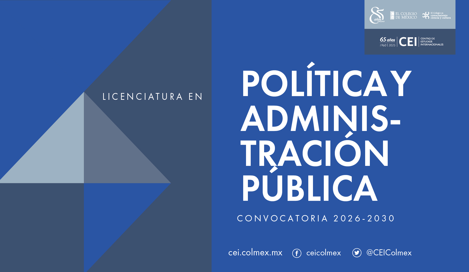 El Centro de Estudios Internacionales de El Colegio de México, A. C., convoca a aspirantes de nacionalidad mexicana o extranjera, residentes en México o fuera del país, al concurso para ingresar a las licenciaturas en Política y Administración Pública y en Relaciones Internacionales, que se llevará a cabo durante la primera mitad de 2026.